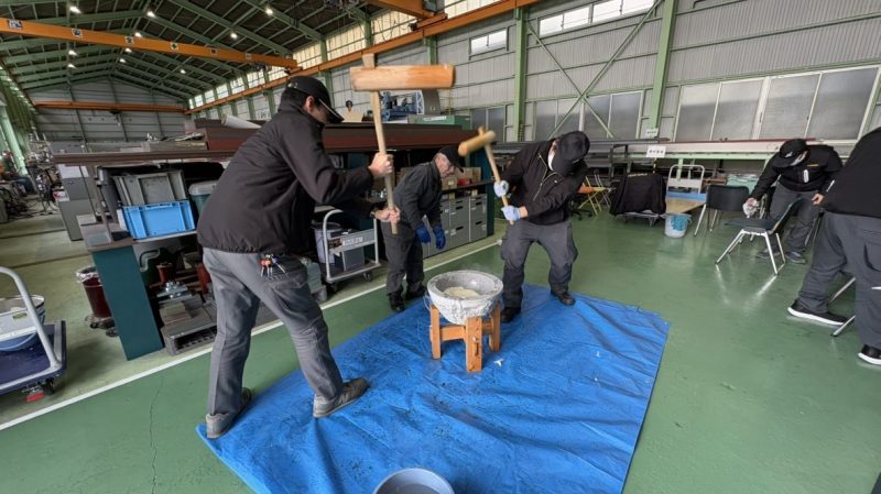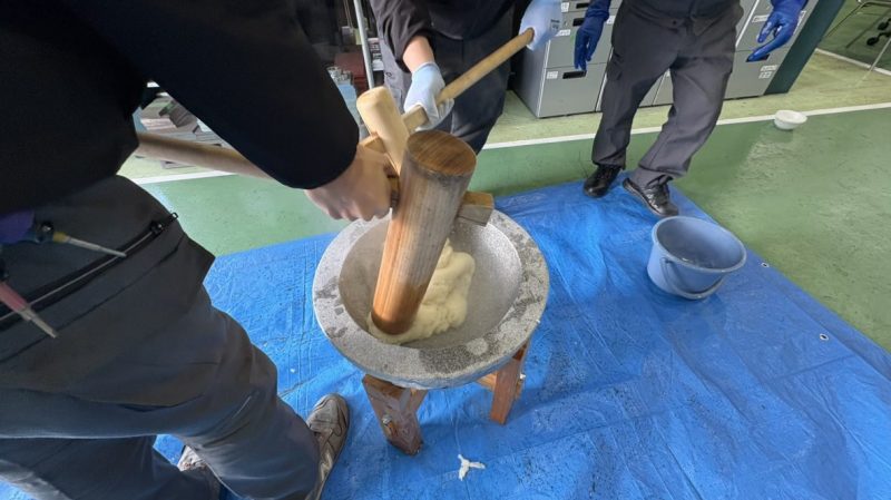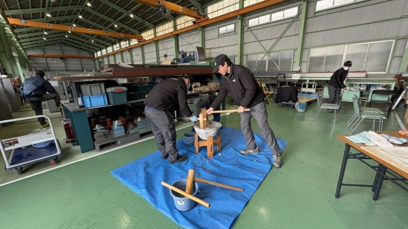 昨年できなかったので2年ぶりの餅つきでしたが、手際よく進めてくれています。