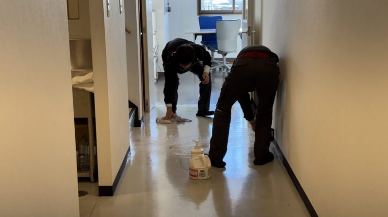 事務所の中も、廊下や階段に黒ずみが目立つようになりました。